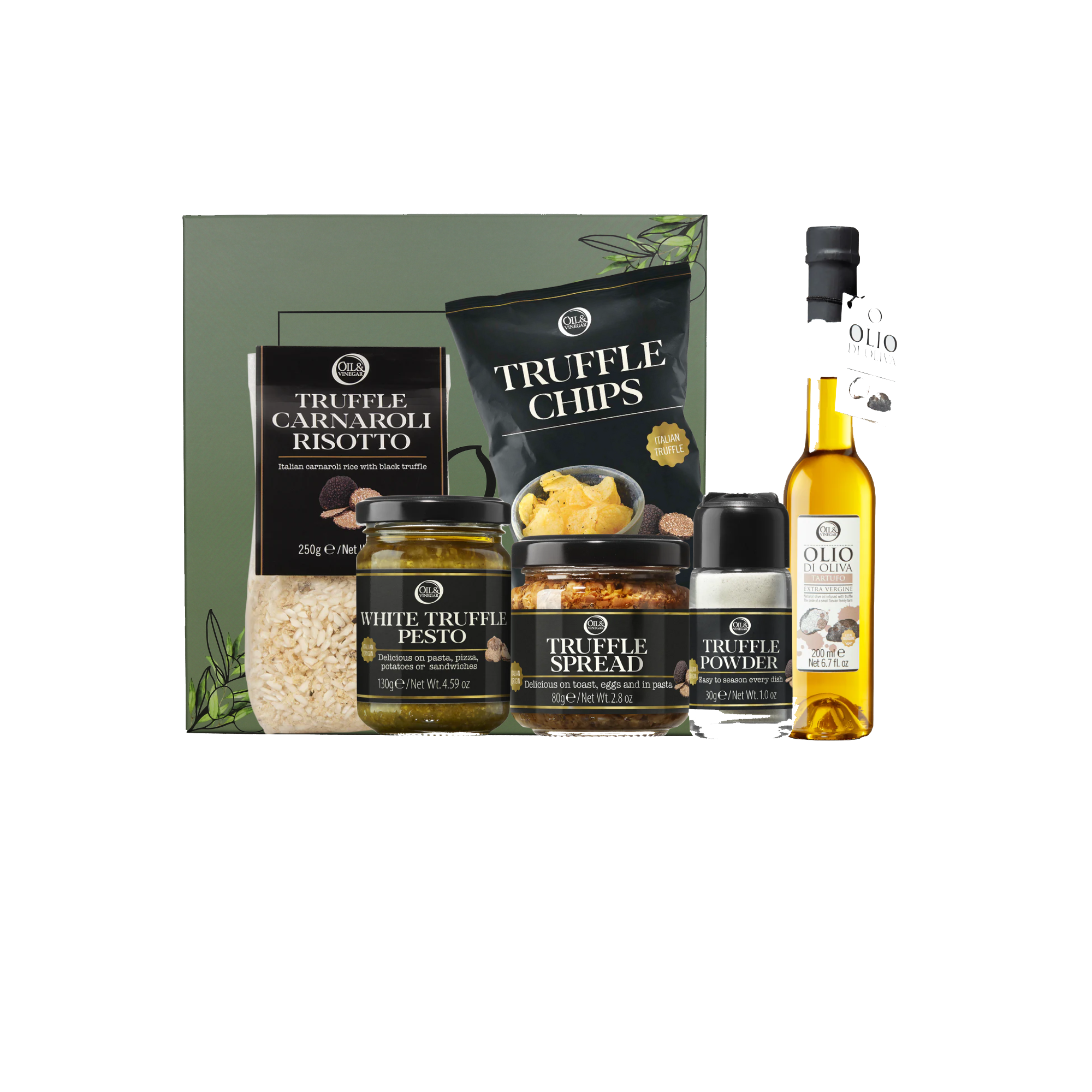 Mit dem Taste of Truffle Set erhalten Sie alle beliebten Trüffelprodukte von Oil & Vinegar auf einmal. Von cremigem Risotto und knusprigen Trüffelchips bis hin zu aromatischen Brotaufstrichen und Trüffel-Olivenöl. Perfekt, um den reichen, erdigen Geschmack von Trüffeln zu Hause zu entdecken.